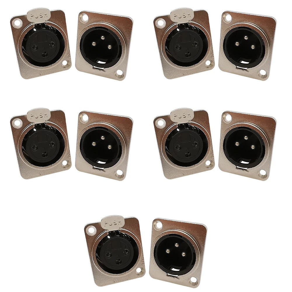 5Pcs Male Plug & 5Pcs Female Socket 3PIN XLR Connector