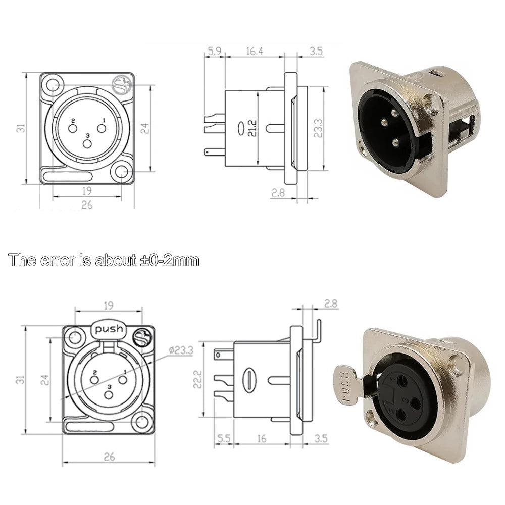 Name: XLR male female Jack socket 3 pin Panel Mount connectors