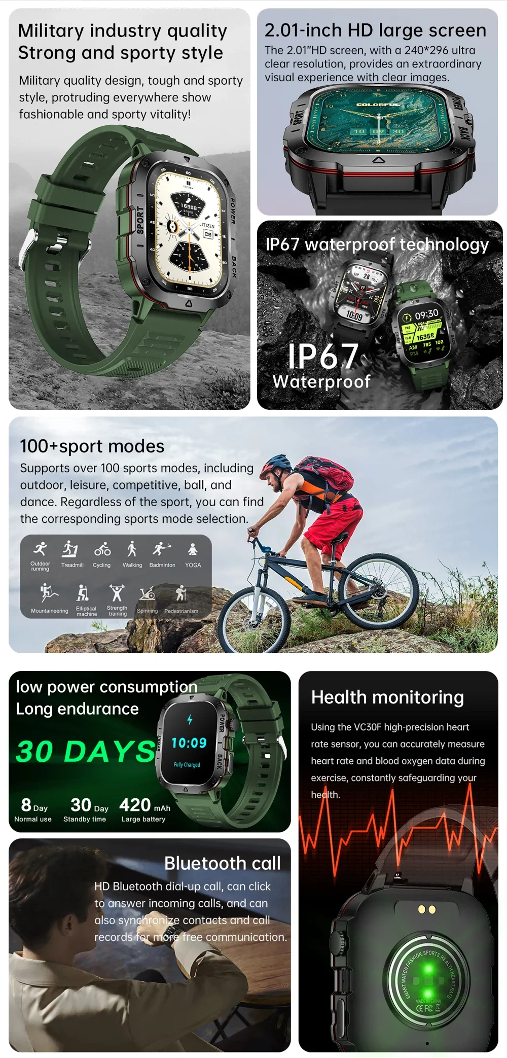 2025 Outdoor Military 3ATM Waterproof Smart Watch Men 420mAh Battery Heart Rate Sports Fitness Watches Bluetooth Call Smartwatch