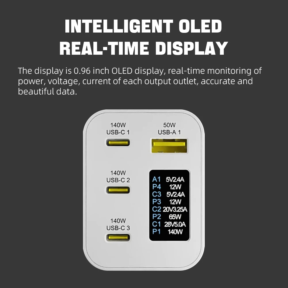 280W GaN High Power Charger 0.96inch OLED Screen PD3.1 140W+140W PPS105W Portable US/EU/UK/KR C7/AU Phone Laptop Fast Charging