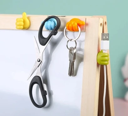 3.Multi-Purpose Hook: This Practical Silicone Thumb Hook Self-Adhesive Can Not Only Be Used as Hook, Hanging Towels, Glasses, Shaver, Key, Kitchen Shelf, Toothbrush, Pen, Clothes, Belt, Plant Flower, Hat, can Also Be Used as a Cable Clamp Wire Bracket to Organize Plugs, Cables, Wires and Any Other Accessories.4.Easy to Use, Can Better "Fix" Items, and Not Easy to Fall off.