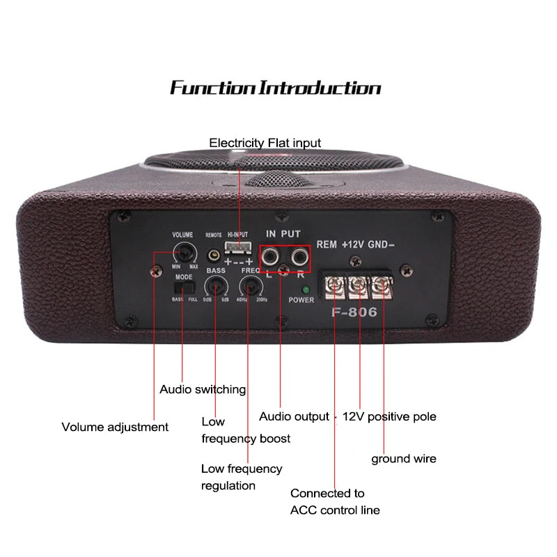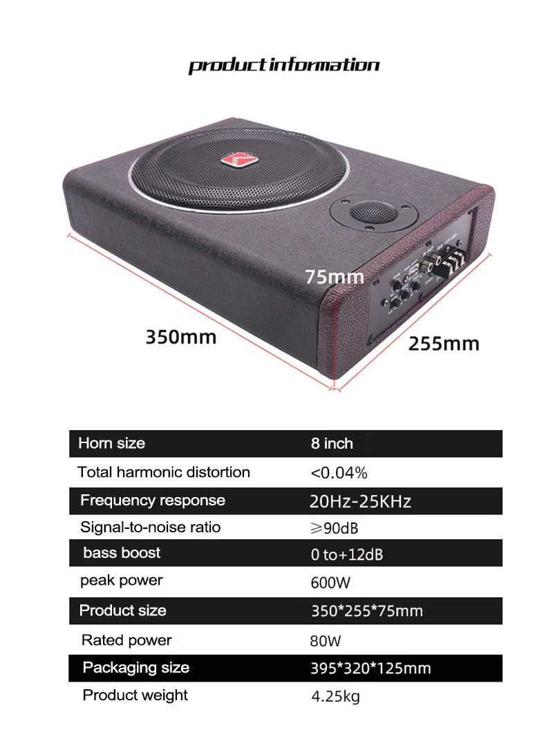 600W 8 Inch Wood Texture Subwoofer Car Audio With treble Slim Under Seat Active Subwoofer Bass Speaker Car Subwoofers Woofer 12V
