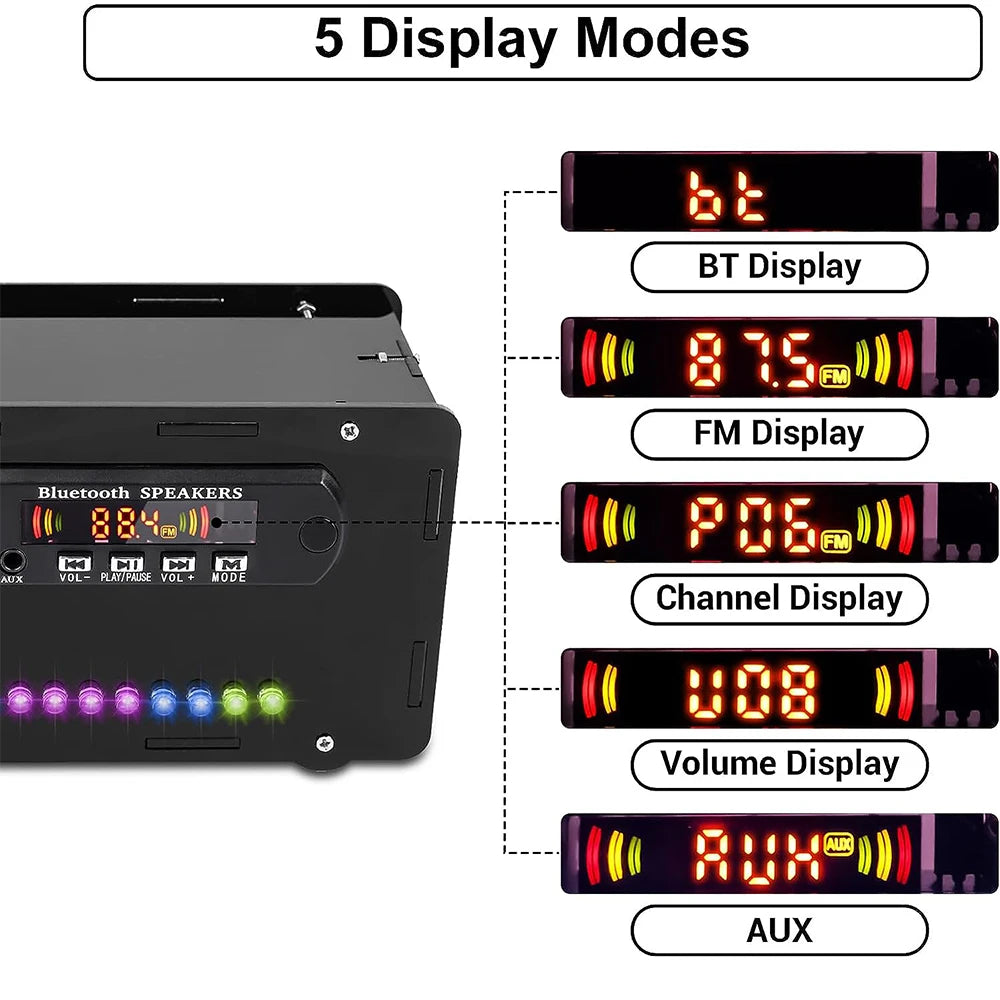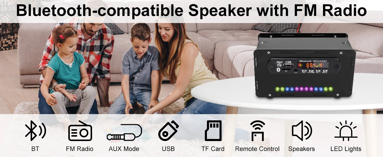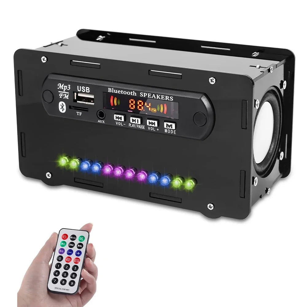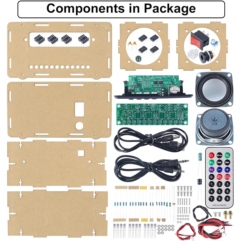 【More Functions】This diy Ḅḷueṭooṭḥ speaker kit appearance uses noble black, gives people a sense of fashion. The digital display provides clear and intuitive information display. 12 Colored LED lights bring you a more comfortable atmosphere and visual enjoyment. This diy kit included remote control makes the operation easy and convenient.