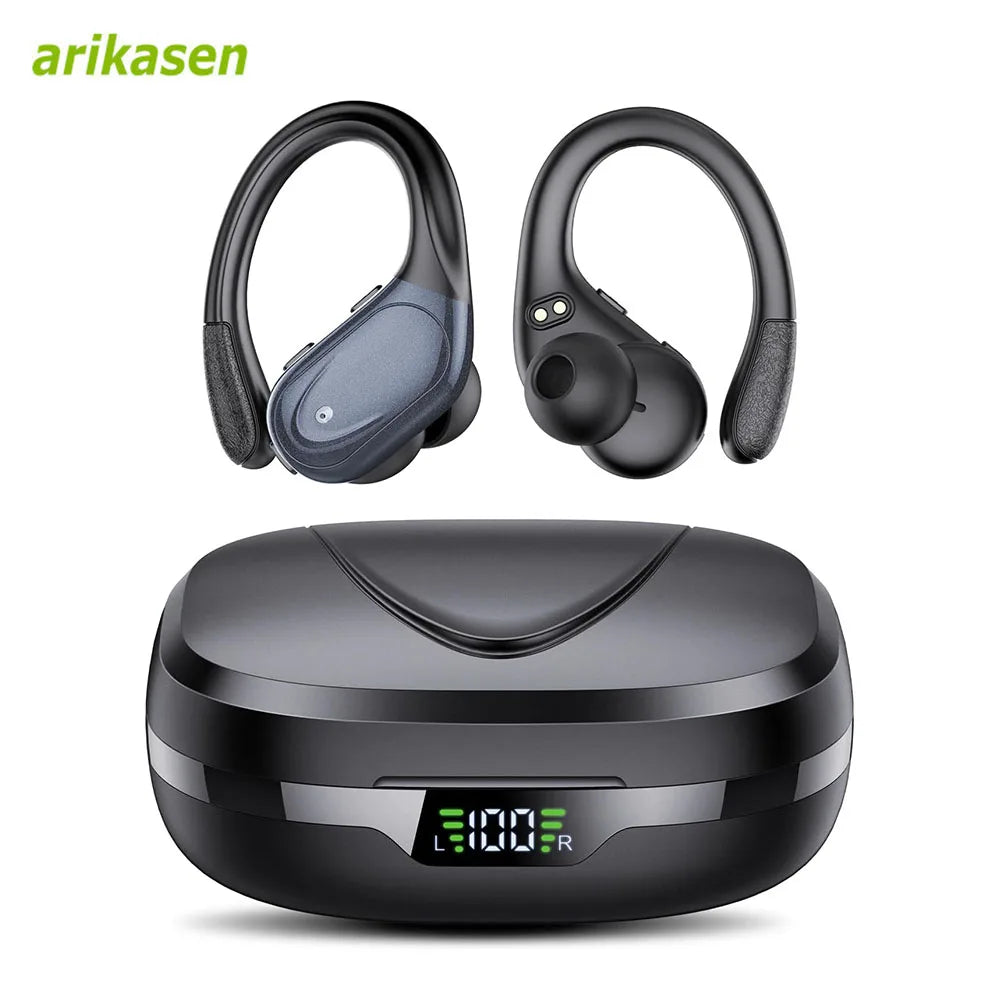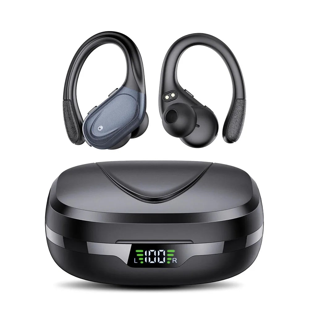 Wireless Earbuds with Earhooks, Designed For Sports, Comes with LED Digital Display Charging Case, Provide Deep Bass and Clear Treble.