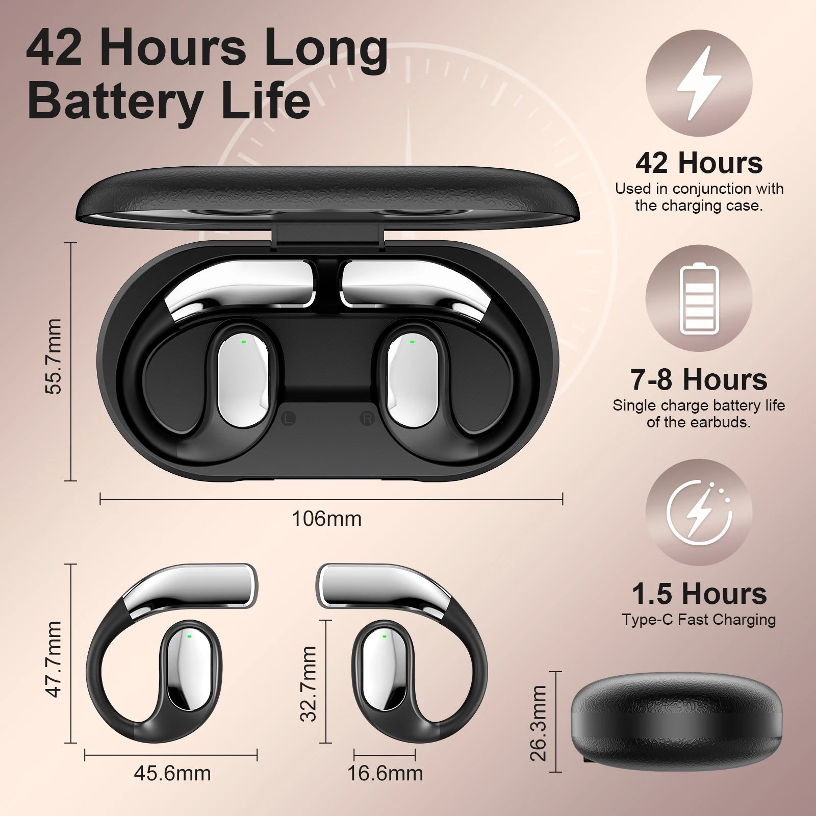 Ear Hook Wireless Earbuds ENC Noise Cancelling Bluetooth 5.4 Headphones Stereo Sound Sport Headset With Mic