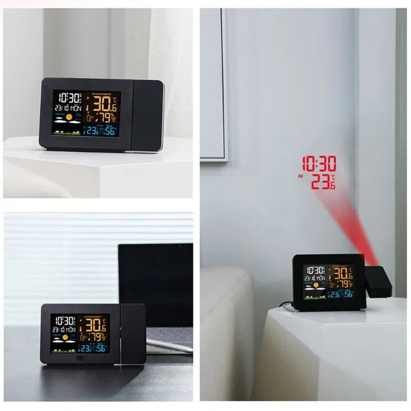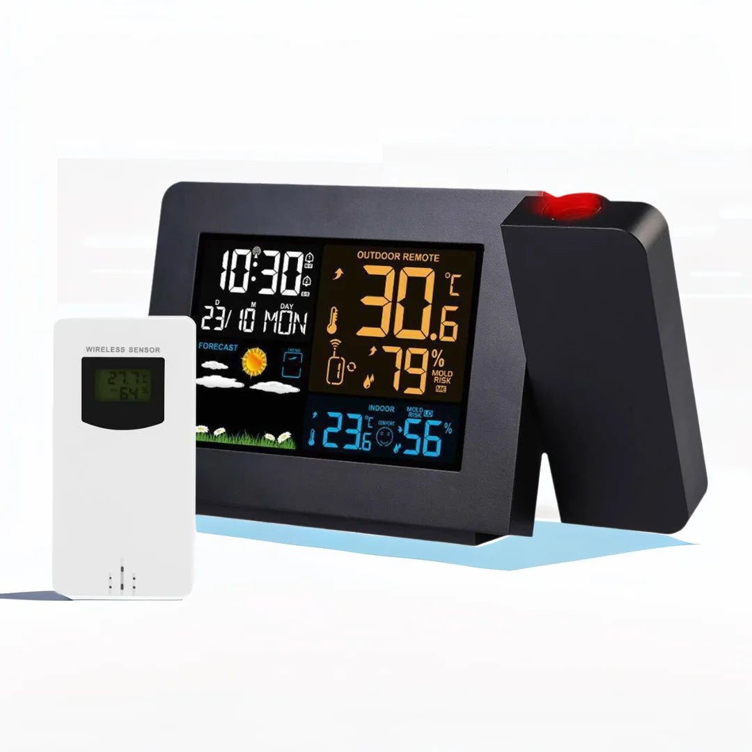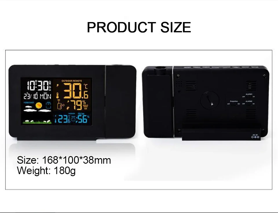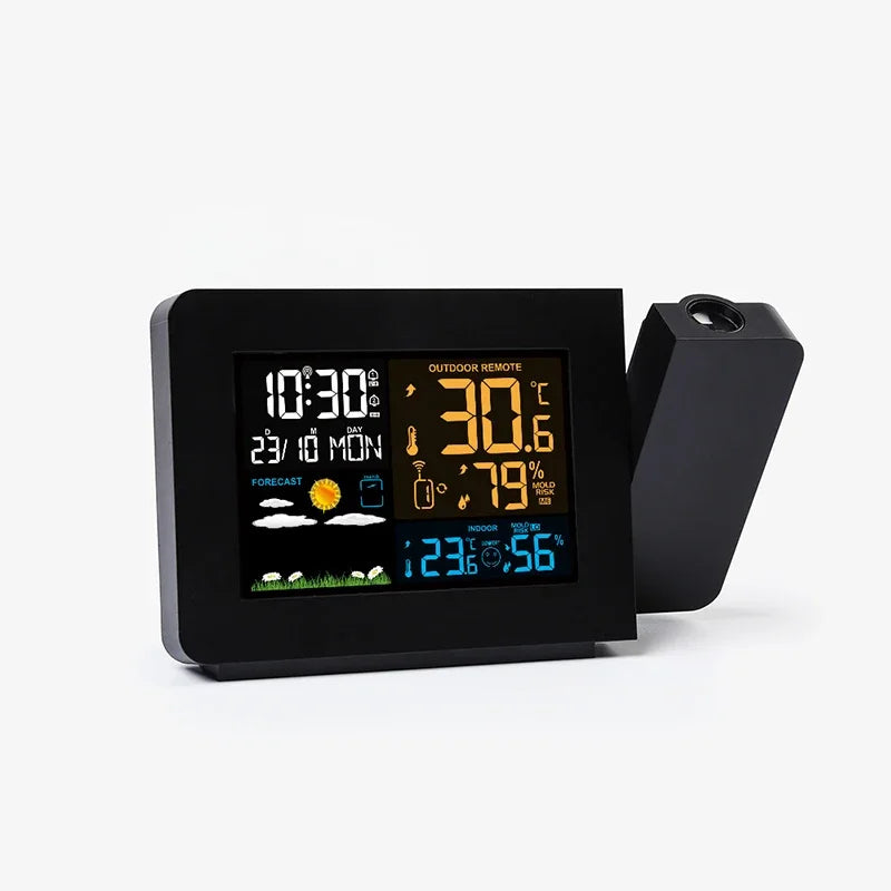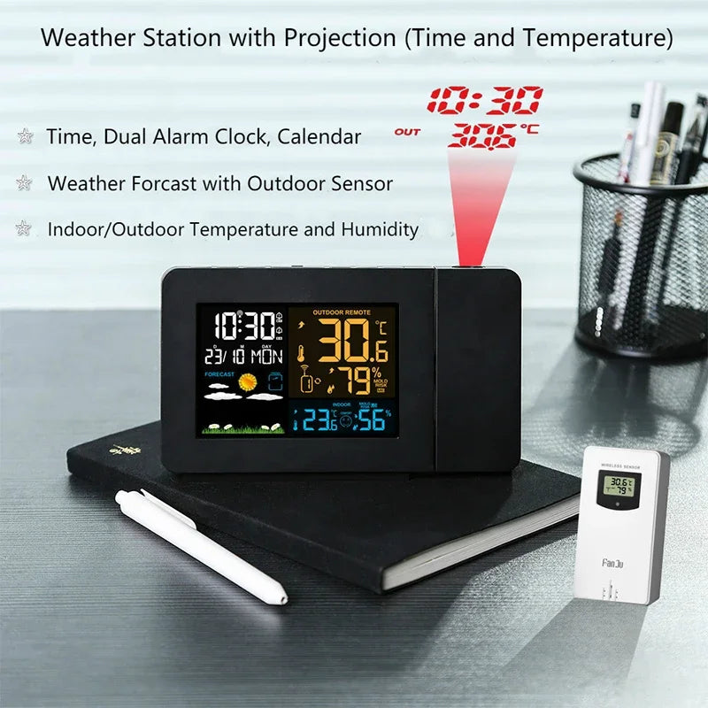 FJ3391 Electronic Projection Clock Weather Station Weather Forecast Temperature &Humidity Color Screen Digital Alarm Clock