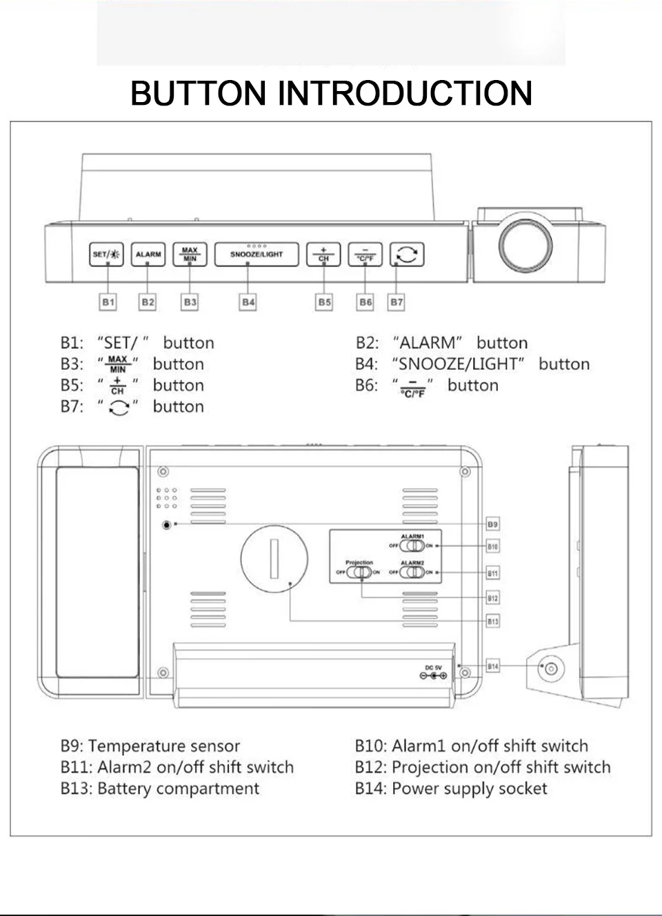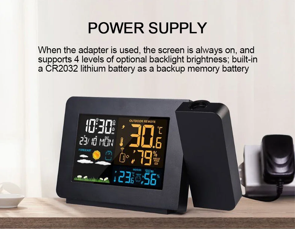 Electronic Projection Clock Weather Station Weather Forecast Temperature &Humidity Color Screen Digital Alarm Clock