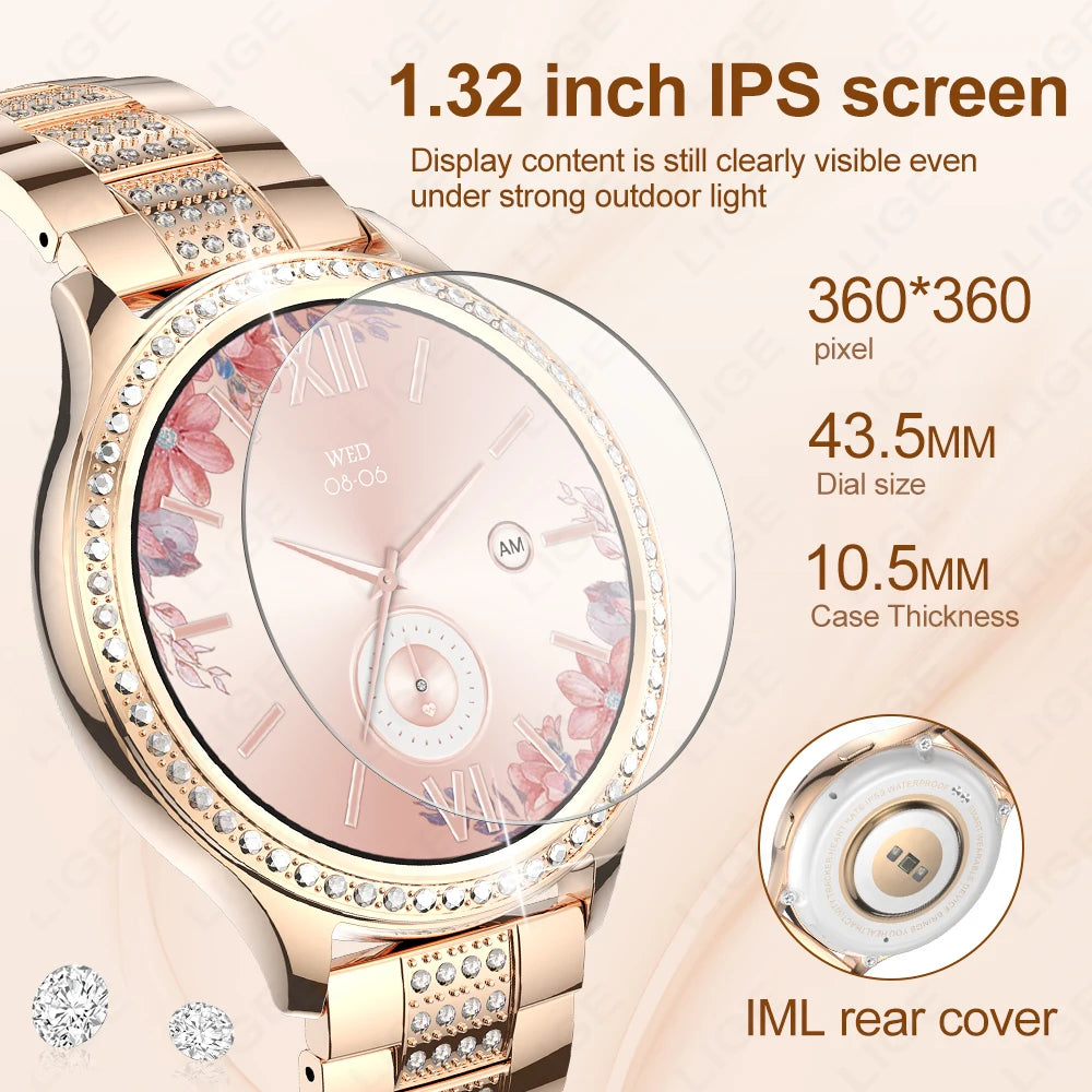 LIGE 1.32 inch Women Smart Watch Bluetooth Call AI Voice Assistant Women's Watches Custom Watch Face Health Monitor Smartwatches