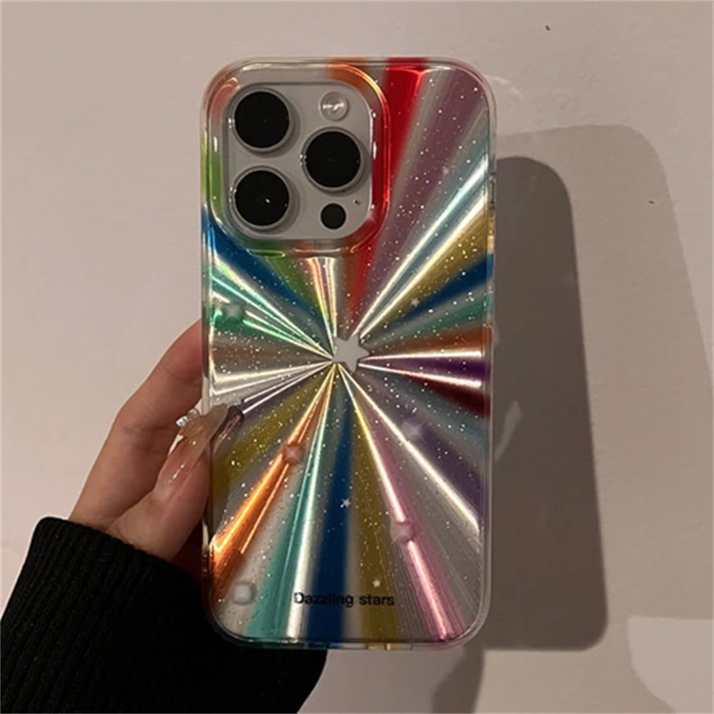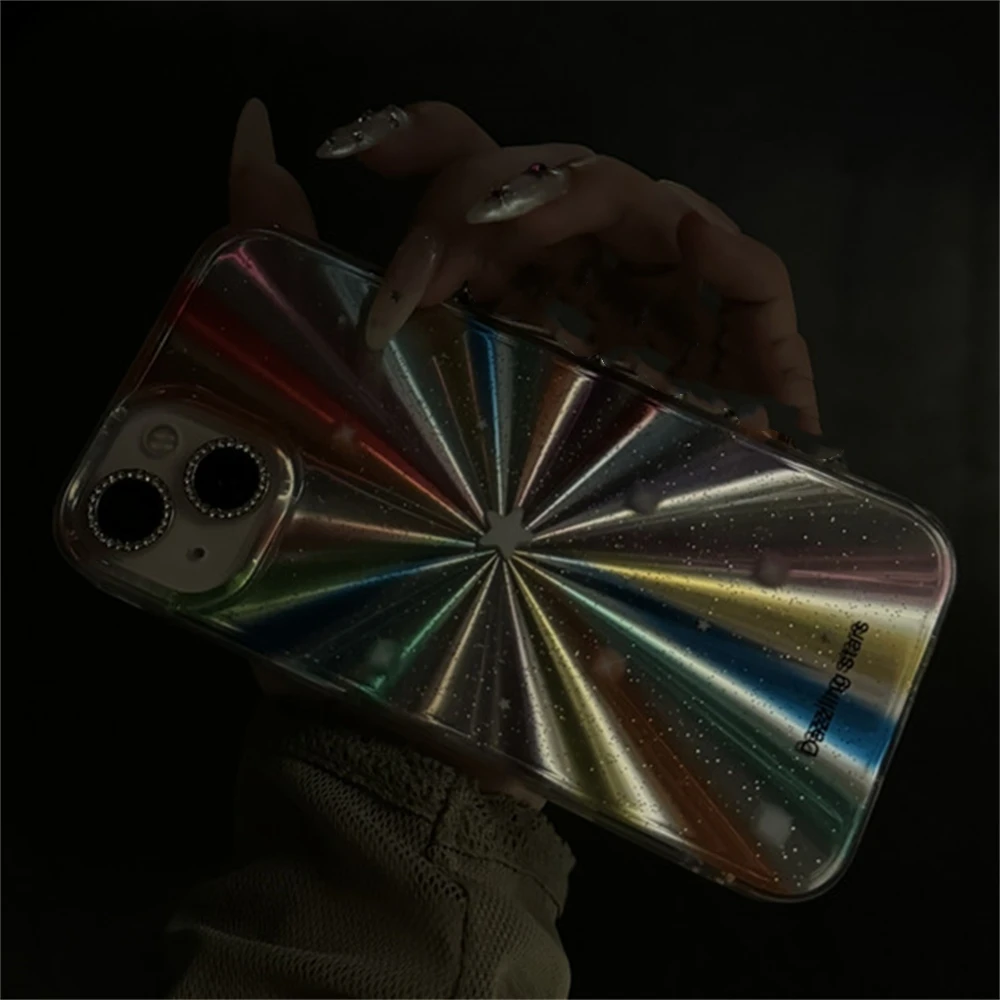 Luxury Laser Radiant Firework Rainbow Color Phone Case For iPhone 15 14 13 12 11 Pro Max Glitter Star Lens Protection Soft Cover