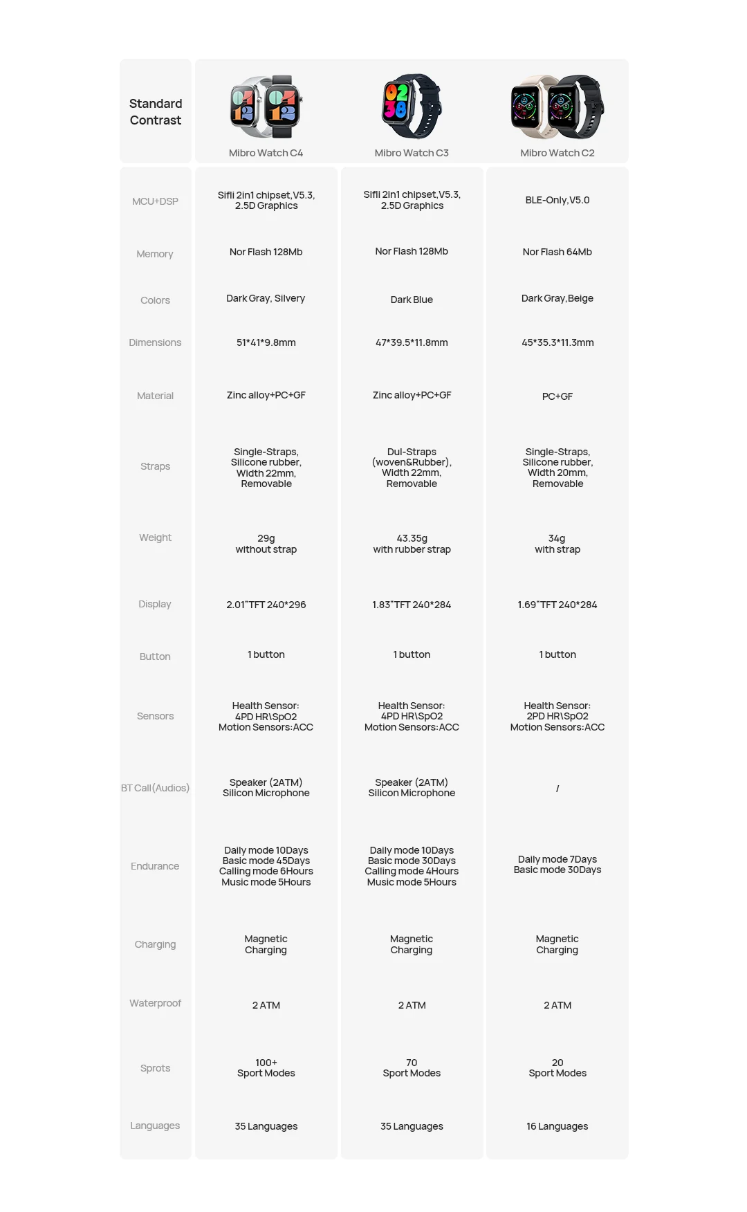 Mibro C4 Watch Super Light Design 2'' Large Screen Bluetooth Call Blood Oxygen Heart Rate Monitoring Smartwatch for Men Women