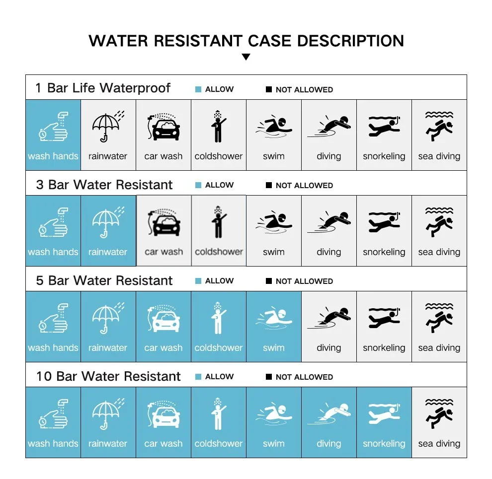 Feature: 50m waterproof, Shockproof, Time, Day and Date Display