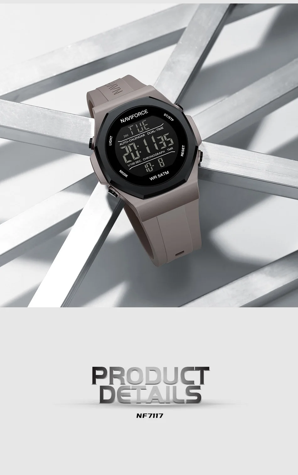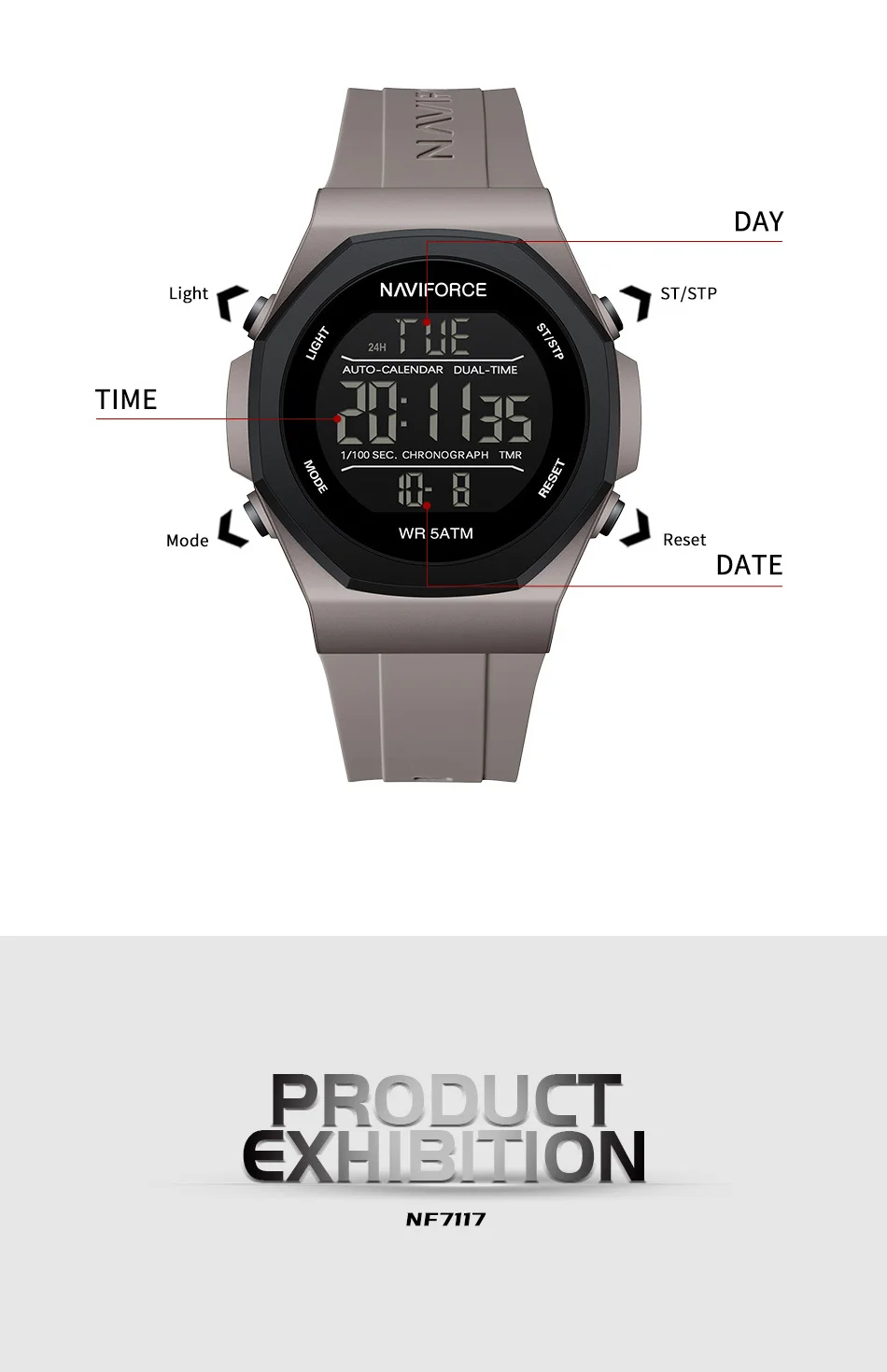 NAVIFORCE Electronic Watches Men LCD Display Waterproof Clock Silicone Strap Luminous Business Man Wristwatch Relogio Masculino