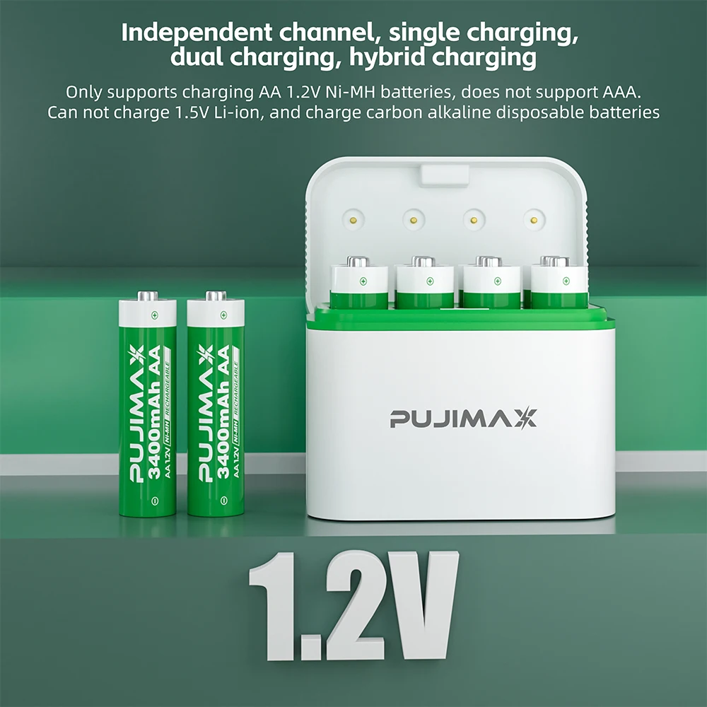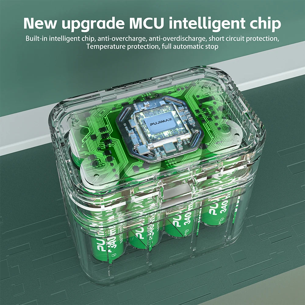 PUJIMAX 1.2V AA Battery Charging Compartment Intelligent Light Switch Fast Charging 8-slot Ni-MH Rechargeable Battery Charger