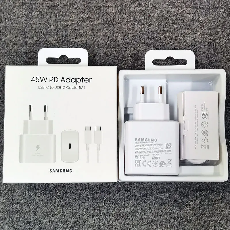 Samsung 45W PD Charger Super Fast Charging Adapter For Galaxy S24 S20 S21 S22 S23 Ultra Z Flip Fold 6 5 4 3 2 For iPhone 15 Pro