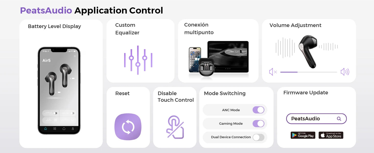 The default setting of the product is ear canal mode 2(medium), which fits most people. However, to avoid potential mismatches during the first use, which may cause abnormal sounds such as hissing or squealing when ANC is turned on, customers experiencing these issues can download the "PeatsAudio" app to select the ear canal model that best suits them. Alternatively, gently rotating the earbud to find the optimal angle can resolve these problems. (Please do not forcefully push the earbuds into your ears, as blocking the vent holes can lead to more squealing sounds.)