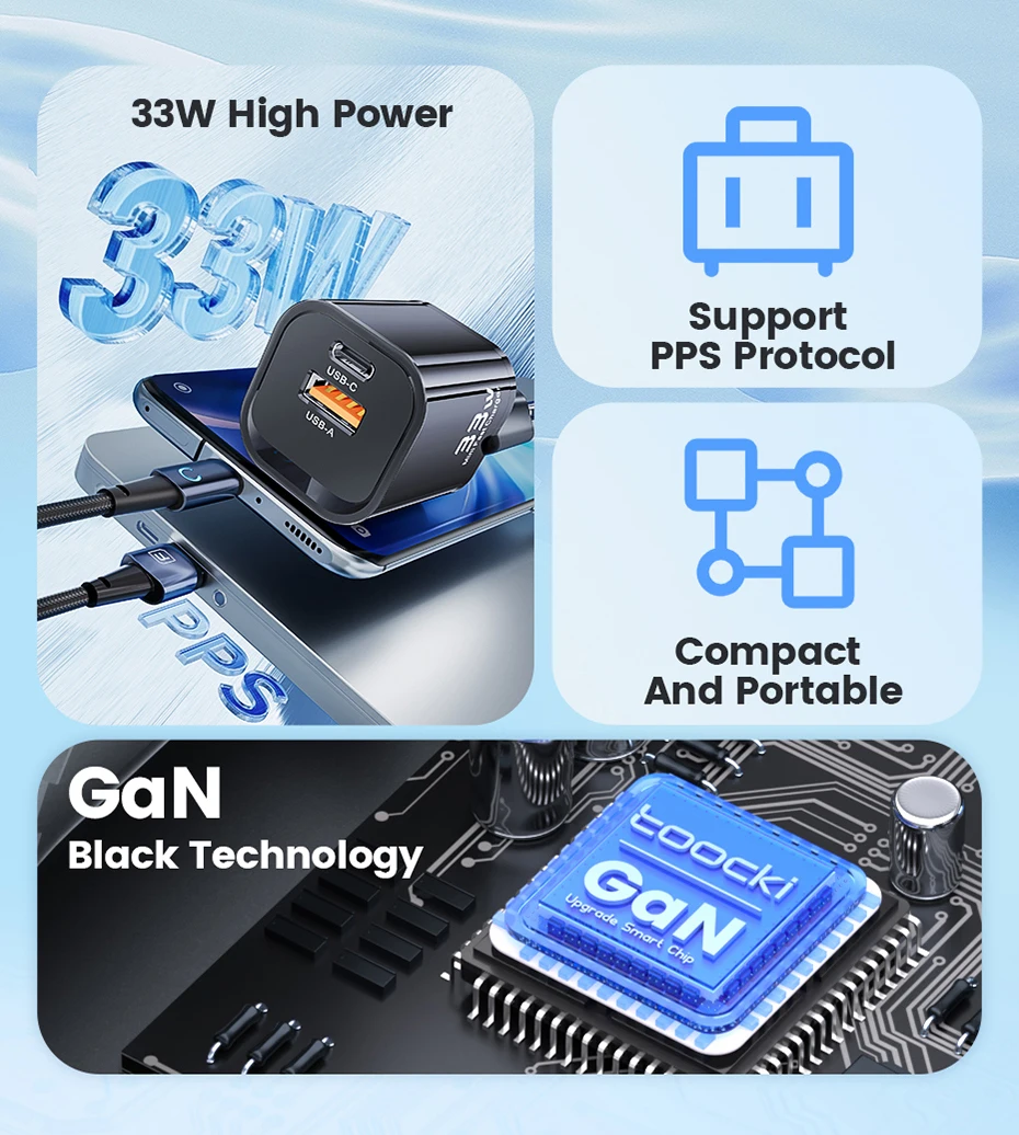 Toocki GaN USB Type C Charger Portable High Speed Charger for iPhone Xiaomi 13 Oneplus Realme PD3.0 QC3.0 PPS Cell Mobile Phone