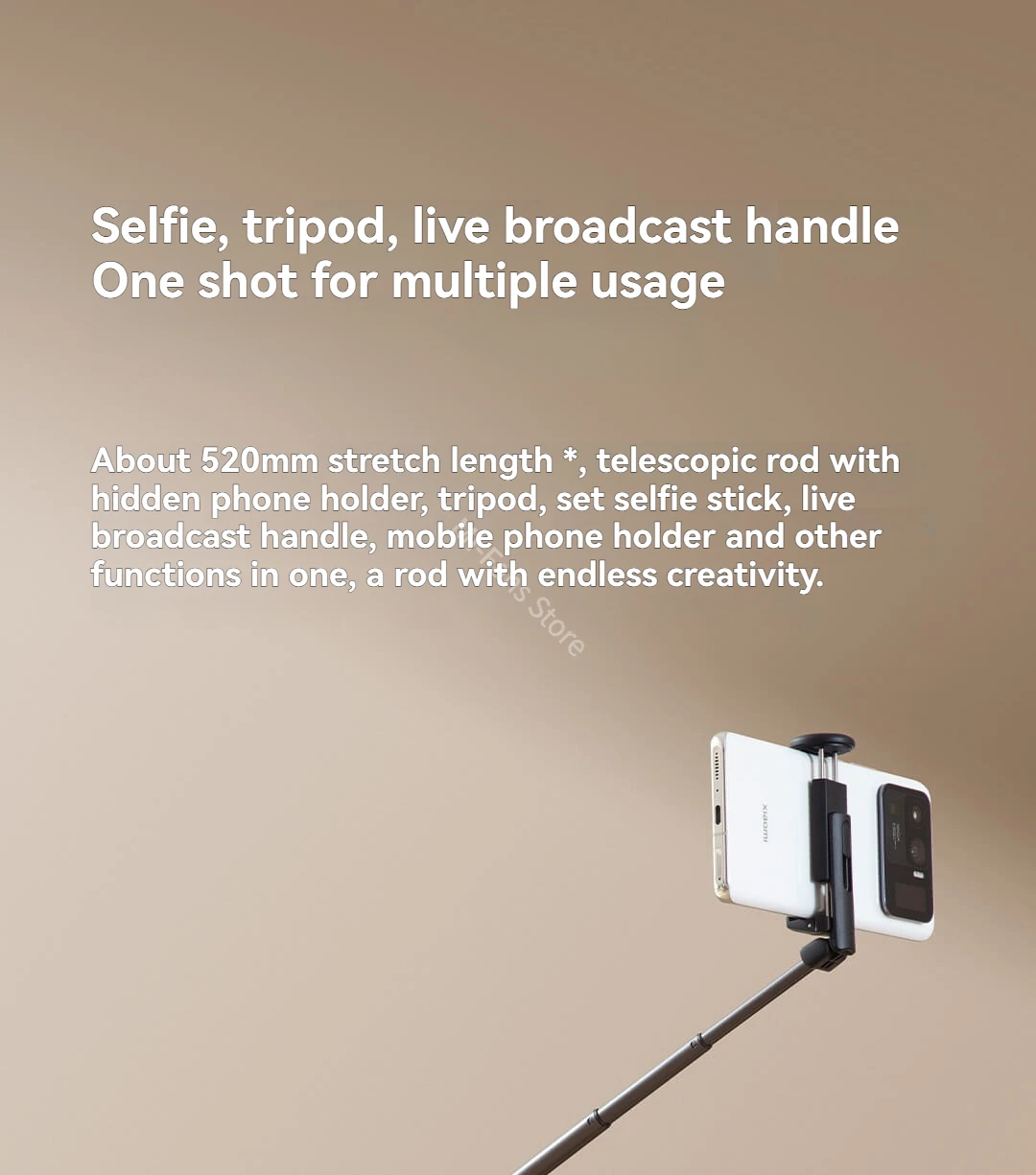 The product is designed especially for smartphone . It is a portable selfie support kit which can be used as mini tripod, tabletop tripod and selfie stick. Also, it can provide stable support and wireless motion control for smartphone. It is a multifunctional accessory in HD photography, video- shooting, time-lapse and long exposure shooting.